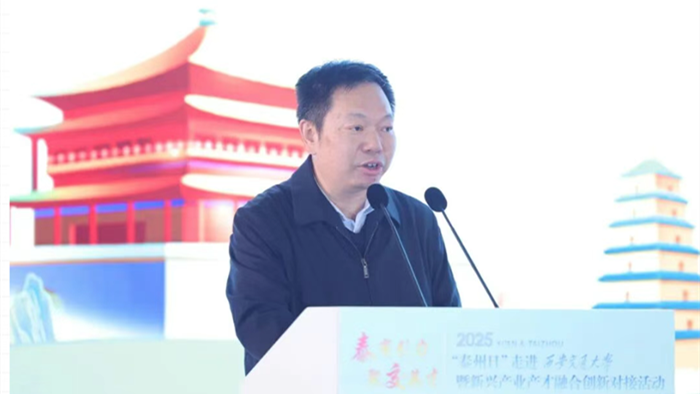 姜冬冬代表泰州市委、市政府對(duì)西安交大給予的大力支持表示衷心感謝。在簡(jiǎn)要介紹泰州經(jīng)濟(jì)社會(huì)發(fā)展情況后,他說,近年來,泰州搶抓“一帶一路”和長三角一體化發(fā)展的戰(zhàn)略機(jī)遇,加快建設(shè)產(chǎn)業(yè)科創(chuàng)強(qiáng)市,全力打造以“大海新晨”為標(biāo)志的現(xiàn)代化產(chǎn)業(yè)體系。近日,泰州隊(duì)勇奪“蘇超首冠”,生動(dòng)詮釋了泰州“三個(gè)不相信”的城市精神特質(zhì),積極向上、勇于超越的城市風(fēng)貌。西安交大是一座為民族復(fù)興而生、以西遷精神鑄魂的百年學(xué)府,培育出一大批國之棟梁,鑄就了無數(shù)的科研輝煌。泰州與西安交大結(jié)緣已久、合作緊密,誠摯邀請(qǐng)各位交大學(xué)子從心愛的“仙交大”來到江蘇的“鳳凰城”,開啟屬于自己的“星辰大海”。如果選擇來泰就業(yè),國家重點(diǎn)實(shí)驗(yàn)室等高端平臺(tái)為你敞開,3萬家優(yōu)質(zhì)企業(yè)“職”等你來;如果選擇來泰創(chuàng)業(yè),我們提供最高1億元的人才專項(xiàng)扶持、單項(xiàng)2000萬元的重磅資助;如果選擇在泰生活,人才服務(wù)私人訂制,“鳳城英才卡”一卡通享,為你破解“落腳地”“另一半”“下一代”等成長煩惱。熱切期盼能有更多與西安交大通力合作、通贏未來的寶貴機(jī)遇,讓泰州的產(chǎn)業(yè)沃土與交大的科研根系共生共榮,結(jié)出更多的金色碩果。