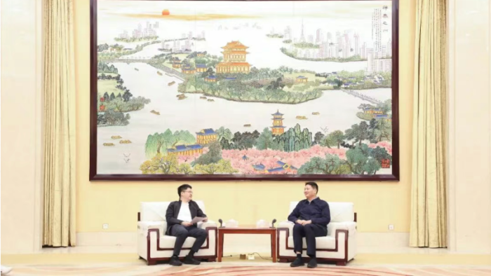 市領(lǐng)導(dǎo)秦猛、葉冬華,蘇州市青年商會(huì)副會(huì)長、波司登股份有限公司董事長高曉東,蘇州市青年商會(huì)副會(huì)長、天聚地合(蘇州)科技股份有限公司董事長左磊等參加會(huì)見。