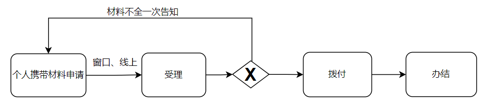 1. 申辦人攜帶申報材料至當地經辦機構窗口(或線上根據提示提交材料)辦理;