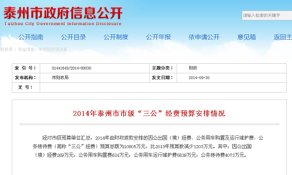 泰州市人民政府2014年政府信息公開(kāi)工作年度報(bào)告