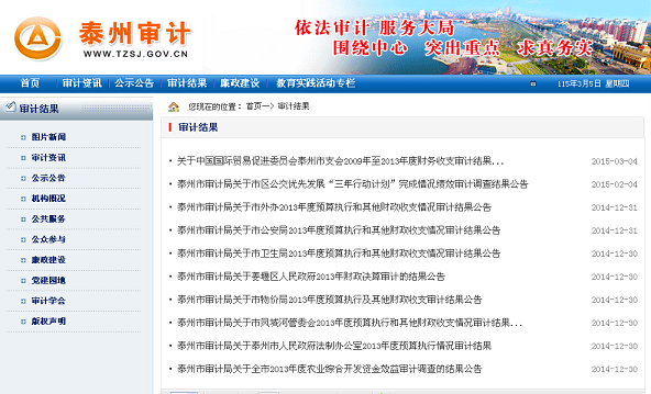??? 5、加強(qiáng)財(cái)政收支審計(jì)信息公開(kāi)。市財(cái)政預(yù)算和其他財(cái)政收支審計(jì)已在市政府門(mén)戶(hù)網(wǎng)站和審計(jì)局網(wǎng)站“審計(jì)結(jié)果”欄目進(jìn)行了公開(kāi),對(duì)審計(jì)出現(xiàn)的問(wèn)題相關(guān)單位整改情況也在審計(jì)局網(wǎng)站“審計(jì)結(jié)果”欄目進(jìn)行了公開(kāi)。