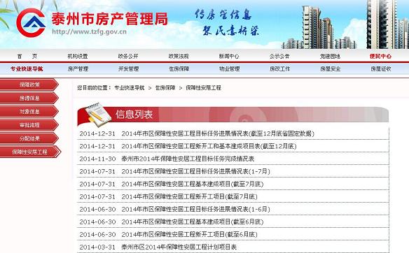 ??? 8、繼續(xù)推進(jìn)保障性住房信息公開(kāi)。扎實(shí)抓好住房保障信息五公開(kāi)。一是全面公示省、部級(jí)住房保障政策、市級(jí)規(guī)范性文件;二是實(shí)時(shí)更新實(shí)現(xiàn)保障性房源全公開(kāi),對(duì)保障性安居工程年度建設(shè)計(jì)劃和具體建設(shè)項(xiàng)目信息在市住房保障網(wǎng)站及時(shí)向社會(huì)公布;三是兩級(jí)公示實(shí)現(xiàn)審批流程全公開(kāi),嚴(yán)格落實(shí)保障向住房申請(qǐng)“三級(jí)審核、兩級(jí)公示”制度,確保了申請(qǐng)對(duì)象家庭的人口、收入、住房等情況的準(zhǔn)確性和真實(shí)性;四是全程監(jiān)督實(shí)現(xiàn)分配結(jié)果全公開(kāi),在保障性住房的分配過(guò)程中,始終堅(jiān)持統(tǒng)一計(jì)算機(jī)搖號(hào)、公開(kāi)配租,由人大、政協(xié)、公安、民政、公證處等部門(mén)全程監(jiān)督搖號(hào)和選房的全部過(guò)程;五是公布清退戶(hù)實(shí)現(xiàn)退出信息全公開(kāi),對(duì)不再符合住房保障條件責(zé)令退出的原保障家庭信息進(jìn)行公開(kāi),實(shí)現(xiàn)退出機(jī)制的公開(kāi)透明。2014年,已清退2戶(hù)不符合廉租住房承租條件的家庭。公開(kāi)途徑:市政府門(mén)戶(hù)網(wǎng)站政府信息公開(kāi)專(zhuān)欄、市住房和城鄉(xiāng)建設(shè)局政府信息公開(kāi)專(zhuān)欄、泰州市房屋征收信息網(wǎng)、各征收現(xiàn)場(chǎng)。