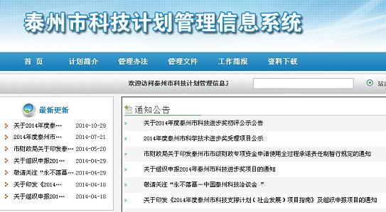??? 12、推動(dòng)科技管理和項(xiàng)目經(jīng)費(fèi)信息公開(kāi)。公開(kāi)《泰州市科技計(jì)劃項(xiàng)目管理辦法》、《泰州市科技專(zhuān)項(xiàng)經(jīng)費(fèi)管理辦法》和《泰州市科技支撐計(jì)劃資金管理辦法》等科技計(jì)劃管理相關(guān)制度。2014年,全市所有科技計(jì)劃項(xiàng)目的申報(bào)通知、項(xiàng)目公示、立項(xiàng)通知、資金安排等均實(shí)現(xiàn)統(tǒng)一對(duì)外公開(kāi)。
