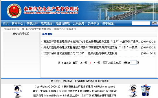 ??? 17、深化安全生產(chǎn)事故信息公開(kāi)。事故調(diào)查報(bào)告經(jīng)政府批復(fù)后,除涉及個(gè)人隱私和商業(yè)秘密的依法予以保密外,其余內(nèi)容包括事故基本情況、事故發(fā)生經(jīng)過(guò)、應(yīng)急處置情況、事故原因和性質(zhì)、事故有關(guān)責(zé)任單位和責(zé)任人員的處理情況、事故防范和整改措施等全文公開(kāi)。2014年,已對(duì)市政府授權(quán)牽頭調(diào)查的13起事故調(diào)查報(bào)告依法進(jìn)行信息公開(kāi),保證事故調(diào)查透明度。