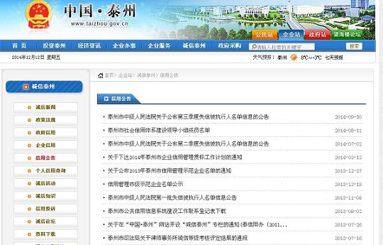 ??? 19、推動(dòng)信用信息公開(kāi)。建設(shè)“一網(wǎng)兩庫(kù)一平臺(tái)”,大力推動(dòng)信用信息公開(kāi),在“誠(chéng)信泰州網(wǎng)”上及時(shí)、依法發(fā)布各行政機(jī)關(guān)掌握的信用信息共計(jì)1274條。不斷完善和更新企業(yè)信用基礎(chǔ)數(shù)據(jù)庫(kù)和個(gè)人信用基礎(chǔ)數(shù)據(jù)庫(kù),并開(kāi)通企業(yè)信用和部分重點(diǎn)人群信用信息網(wǎng)絡(luò)查詢(xún)窗口,方便公眾獲取信用信息。
