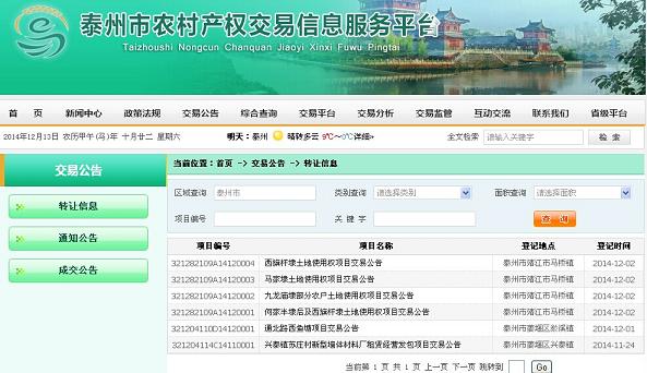 ??? 6、抓好征地信息、農(nóng)村土地承包經(jīng)營(yíng)權(quán)流轉(zhuǎn)信息、國(guó)有建設(shè)用地使用權(quán)和礦業(yè)權(quán)出讓信息公開(kāi)。建立土地登記、出讓結(jié)果公示、征地公告、征收補(bǔ)償安置方案、采礦權(quán)許可公告等網(wǎng)上欄目,及時(shí)公開(kāi)征地批復(fù)相關(guān)信息、土地市場(chǎng)信息,礦產(chǎn)權(quán)資源信息。2014年,共發(fā)布土地征收類(lèi)信息105條,土地供應(yīng)及出讓類(lèi)信息398條,地礦類(lèi)信息2條。建立健全土地流轉(zhuǎn)服務(wù)機(jī)制,通過(guò)公開(kāi)發(fā)布、信息咨詢(xún)等渠道,主動(dòng)適時(shí)向社會(huì)公布土地流轉(zhuǎn)信息,引導(dǎo)農(nóng)村土地承包經(jīng)營(yíng)權(quán)有序流轉(zhuǎn)。