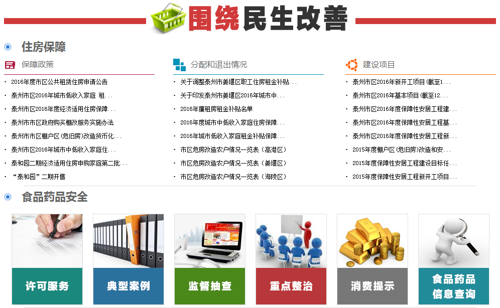 3.圍繞推動民生改善。落實環保信息公開,開辟"中央環境保護督察組交辦信訪問題辦理情況"專欄,及時公開調查處理情況;定期公布城市空氣質量預報、水廠水質、飲用水水源安全狀況和供水廠出水用戶水龍水質安全狀況。加強社會救助信息公開,按月公開市紅十字會等機構社會捐贈款物接收和支出明細,按季度公開低保、醫療救助、臨時救助情況。搭建扶貧開發信息網,公開扶貧政策、脫貧農戶等信息。推進住房保障信息公開,及時向社會公開經濟適用房、低收入家庭租金補貼等保障政策,主動公開經濟適用房選房結果、退出名單以及保障性安居工程建設情況,接受群眾監督。