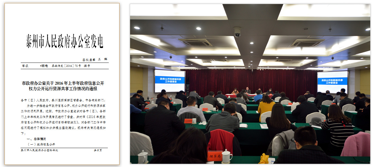 2016年,泰州市認真貫徹落實國家、省政務公開工作要求,堅持以公開為常態、不公開為例外,堅持夯實基礎、完善機制、拓展平臺,政府信息公開內容持續深化,業務能力水平不斷提升,政務運行環境更加透明,全市政府信息公開工作穩妥有序推進。