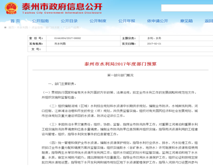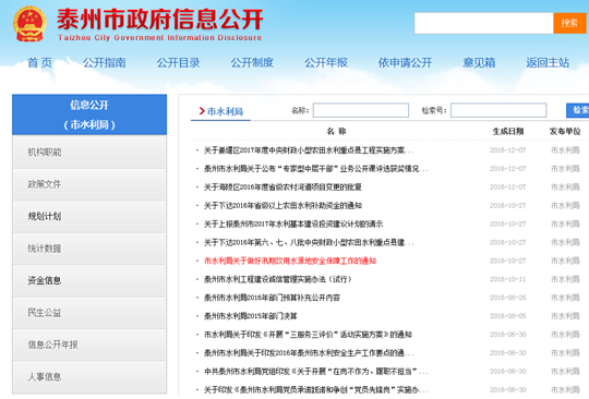 本局2016年政府信息公開工作運行正常,政府信息公開咨詢、申請以及答復工作均得到了順利開展。政府信息主動公開工作的內容方面,我局2016年度共主動公開政府信息59條。包括機構職能、政策文件、規劃計劃、統計數據、資金信息、民生公益、人事信息等。行政權力公開共公布各項行政權力及流程圖。政府信息主動公開的渠道方面,為方便公眾了解信息,我局在泰州水利網、泰州政府網站上均設立“政府信息公開”專欄,公布《目錄》、《指南》和信息內容,并接受搜索和下載;設立“信息公開動態” 欄目,及時公布我局最新的工作動態