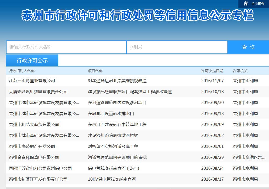 (一)推進行政權力運行信息公開。實現行政權力網上公開運行。2017年,我局累計受理行政許可事項55件,辦結55件,按時辦結率100%,行政審批事項辦理信息在泰州水利門戶網站行政審批專欄即時公布。按照《省委省政府關于進一步簡政放權加快轉變政府職能的實施意見》,對保留的行政審批事項逐項制定了審批流程,將審批清單、辦理運行流程、設定依據、申報材料等要素依法在泰州行政權力網站和行政審批服務中心及時公開。
