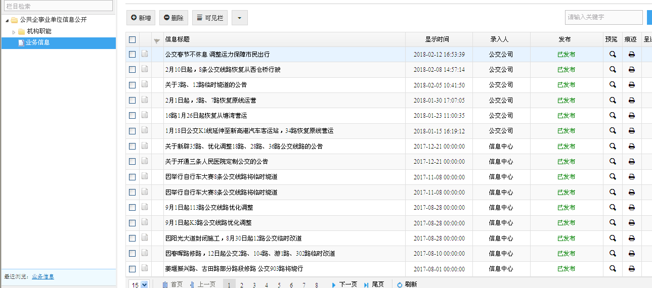 二是市交通運輸局門戶網站。 今年以來,我局門戶網站新增信息公開欄目4個:行政職權、項目招投標、信用信息、財政資金。主動公開發布動態信息2087條,采用1718條。