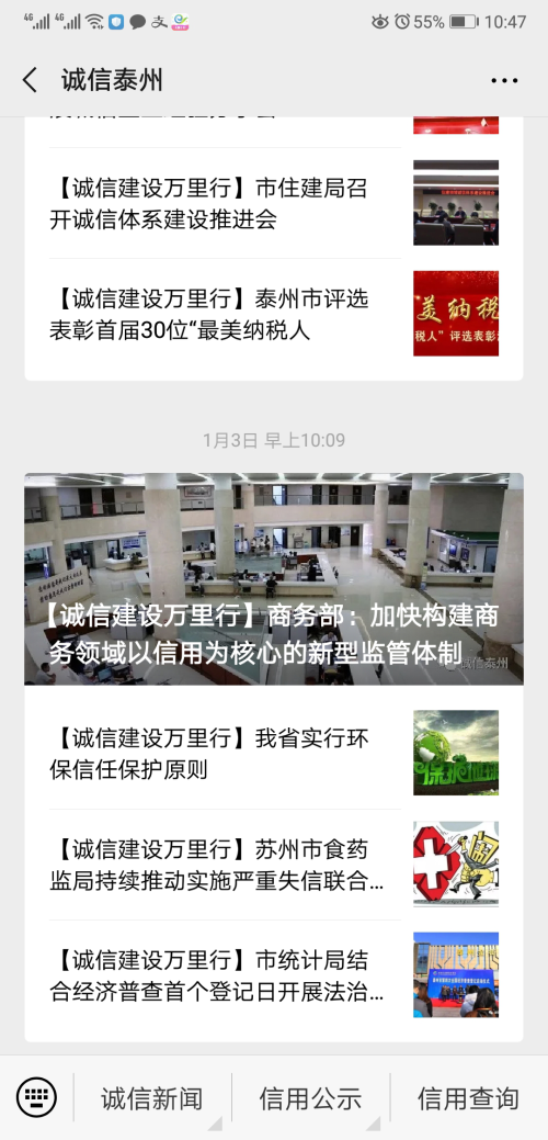 創新建立“泰州市經信委” 發布信息268條;“信用泰州”微信公眾號發布信息412條。